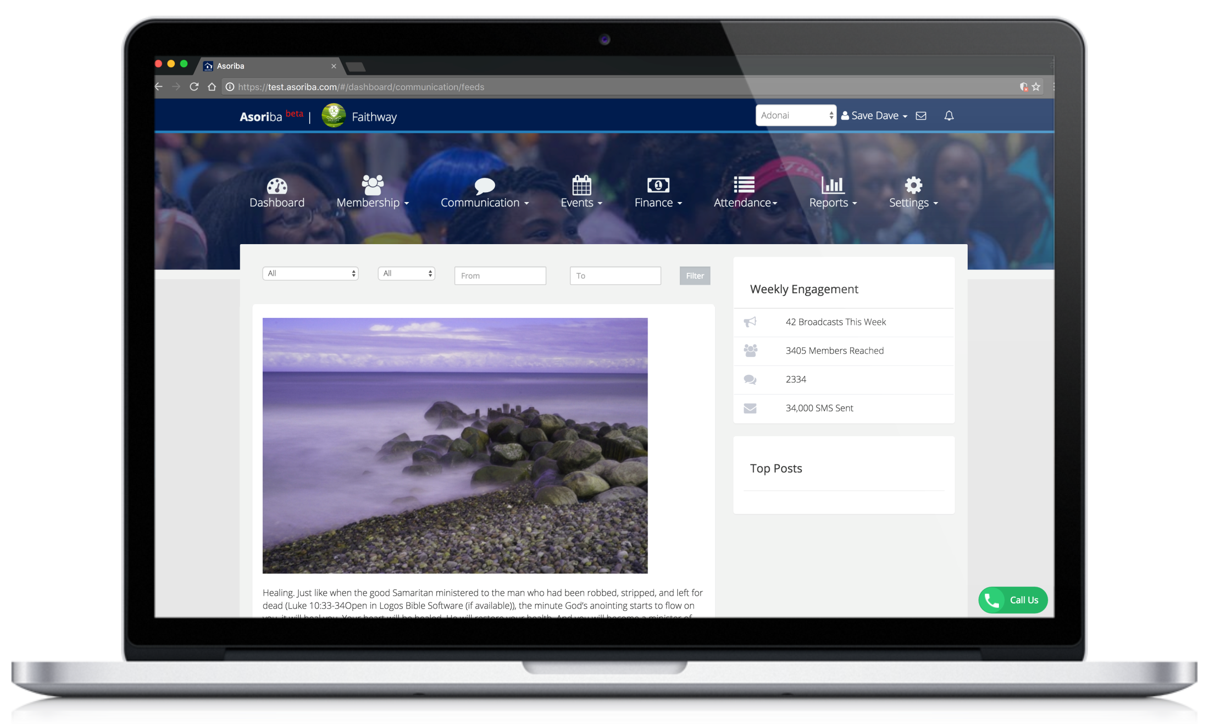 Communication module allows you to quickly and affordably share content (video, audio and text) with your entire congregation and beyond. Members are notified via SMS, email & push notifications on asoriba mobile app. This allows those who have either feature or smart phones or a computer to easily stay in touch.